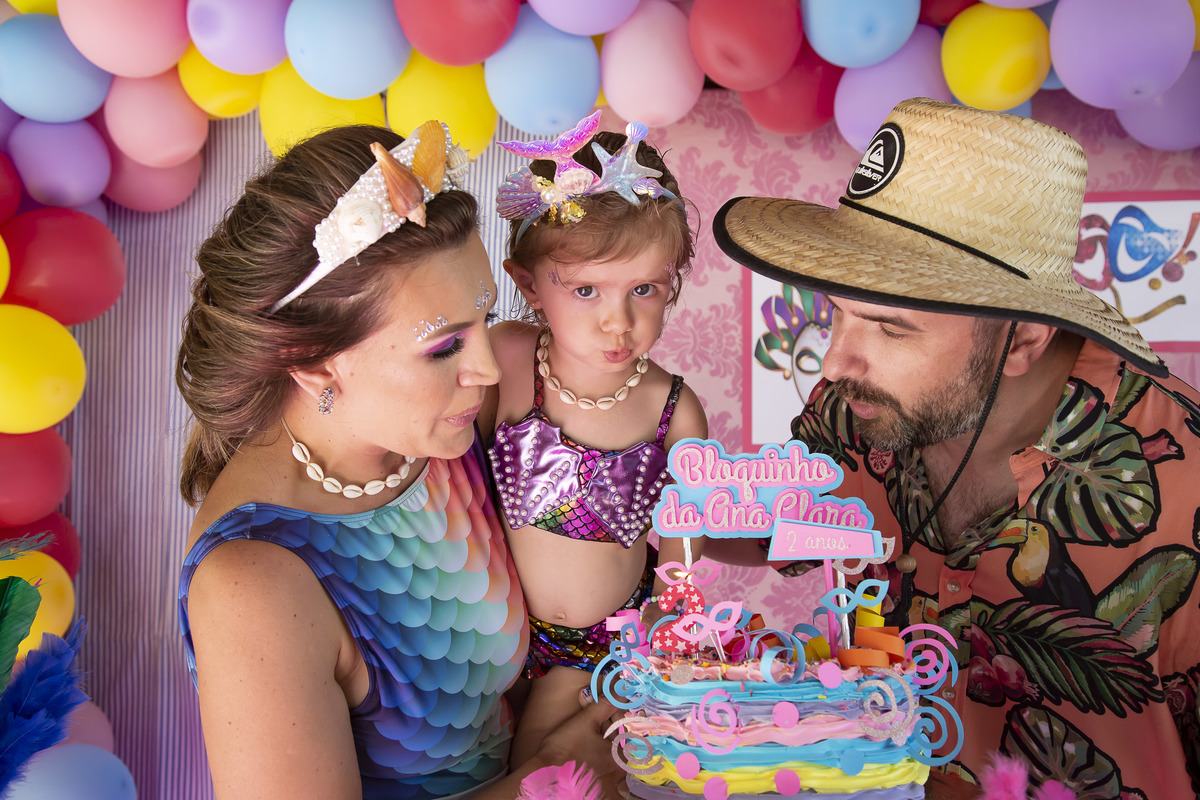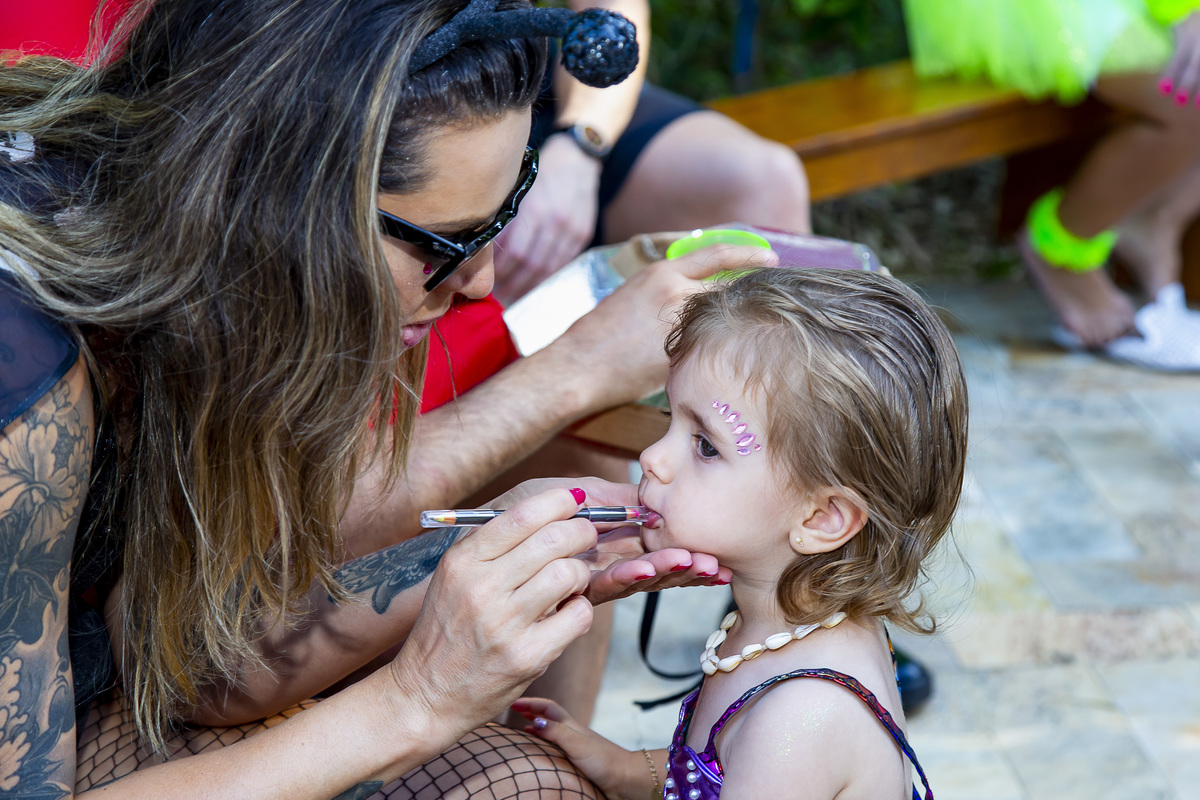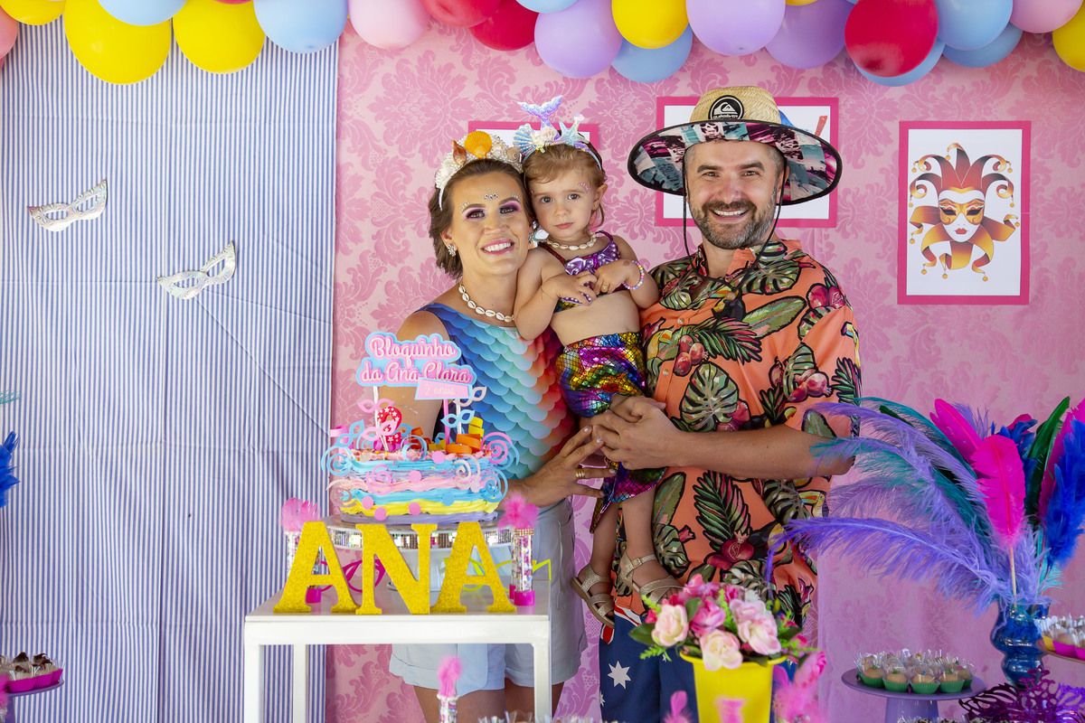 E teve carnaval siiiim!!! Foi em um dia todo especial, dia lindo e ensolarado. A festa da Ana Clara teve muita cor... todos os convidados estavam entraram no clima e estavam caracterizados! A aniversariante estava simplesmente MARAVILHOSA DE SEREIA e a mamãe também! Foi lindo!!! Curta um pouquinho dessa festa linda!